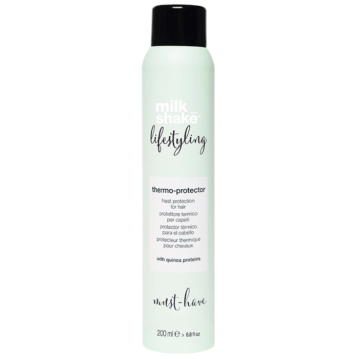 Style your hair with confidence and without compromise. milk_shake Lifestyling Thermo-Protector is your essential shield against heat damage. This ultra-fine spray creates an invisible barrier, protecting hair from hairdryers and styling irons while also reducing drying time.