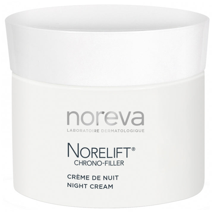 Noreva Norelift Chrono-Filler siluv kortsudevastane öökreem 50ml on teie ülim öine liitlane võitluses vananemise vastu. See luksuslik kreem on asjatundlikult valmistatud võimsast aktiivsete koostisosade segust, mis on loodud teie naha noorendamiseks ja kaitsmiseks magamise ajal.